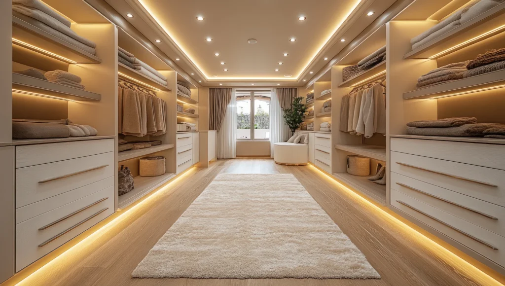 Des garde-robes walk-in organisées, spacieuses et entièrement personnalisées pour vous aider à vivre avec style et efficacité.